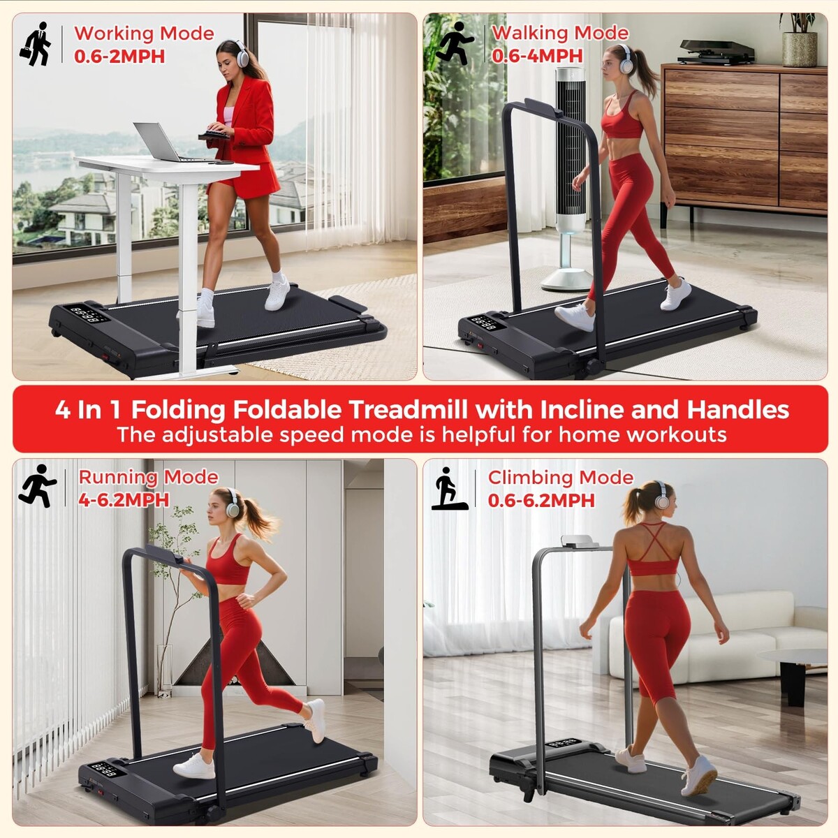 ?Incline Treadmill with Strong Motor? This treadmill with handles features a 3.0HP motor, 0.6?6.2MPH speeds, treadmill 320 lb capacity, and incline for calorie burn. Works as walking pad treadmill with handle bar, compact treadmill, or treadmill for home. Perfect small treadmills for small spaces or treadmills for home.