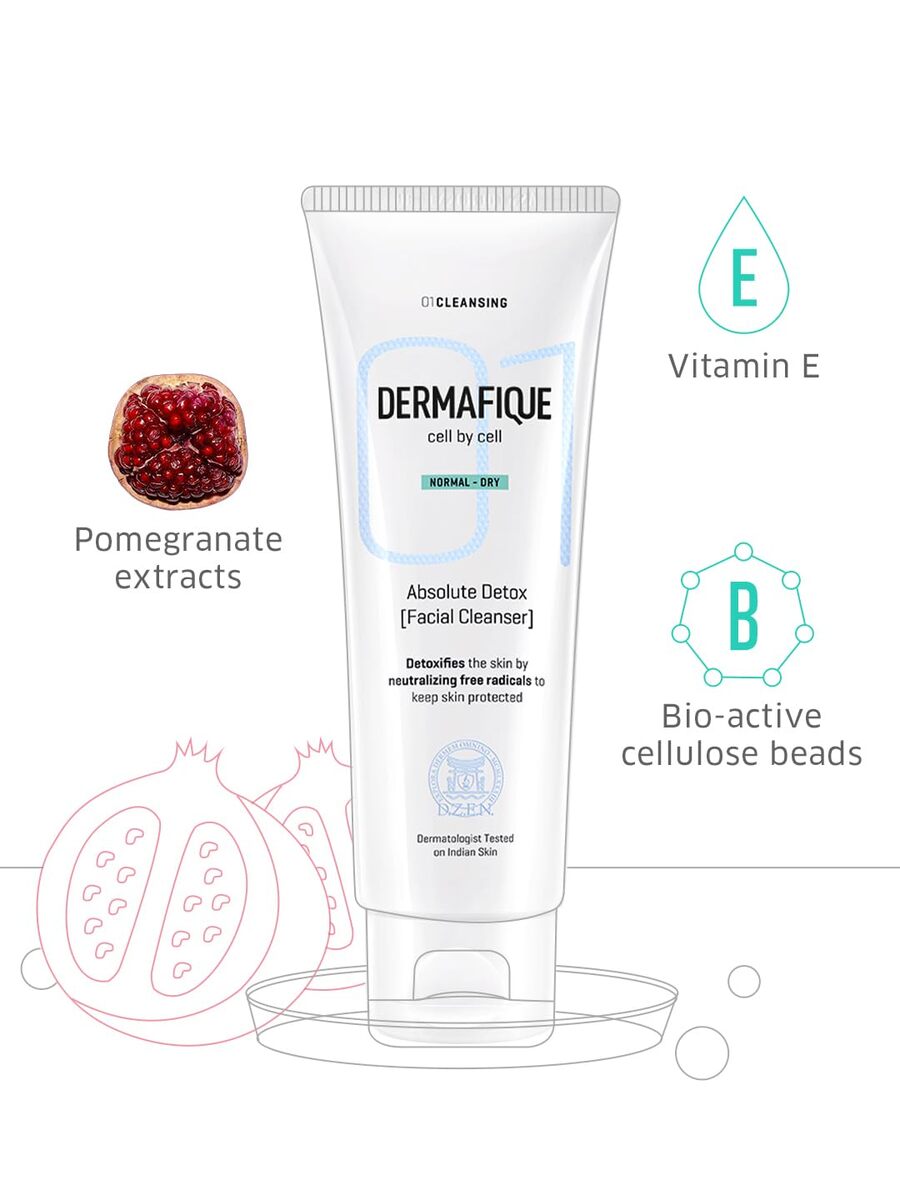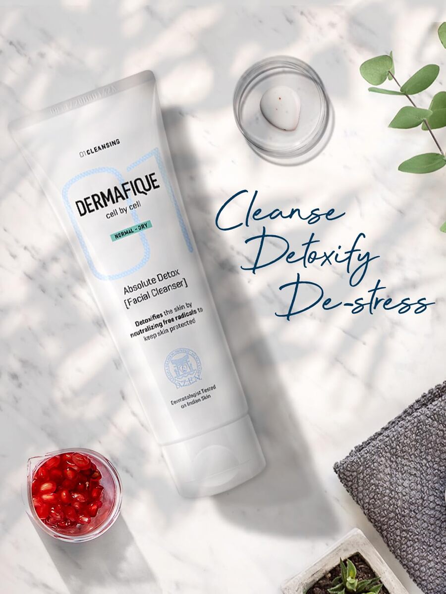 Dermafique's Absolute Detox Facial Cleanser is enriched with Antioxidants like Vitamin E and pomegranate extracts, that lends your skin the much-needed detox and sweep away impurities and cleanses pores without sapping your skin of moisture.