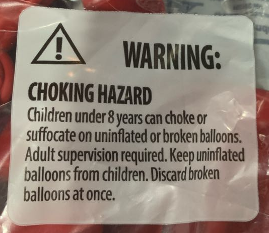 Listings in the Balloons category must include the following choking hazard warning: