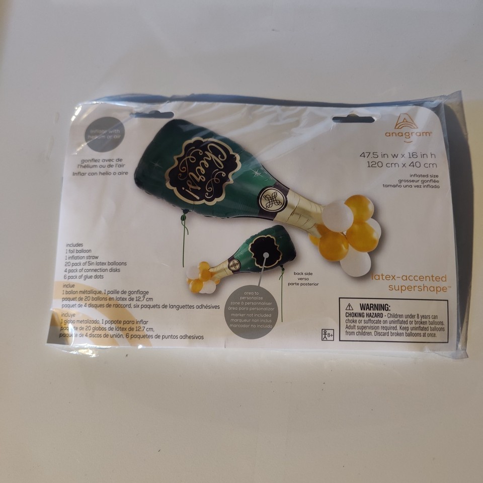 CHEERS! Giant Champagne Bottle 47” Foil/Latex Balloon - Personalize! NIP (B132)