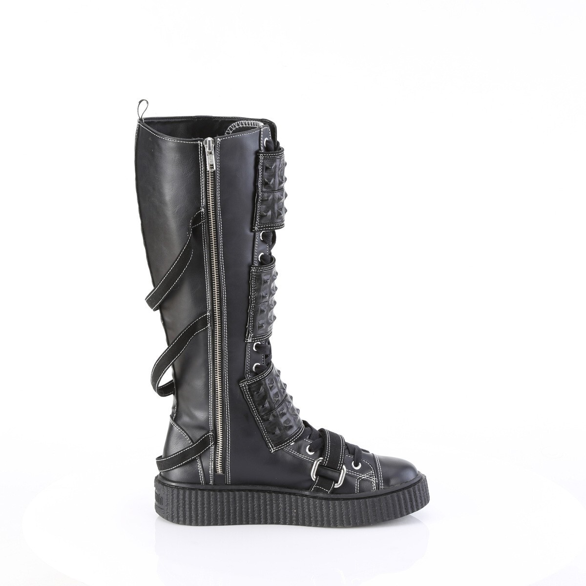 FINAL SALE DEMONIA Round Toe Black Knee High Unisex Creeper Sneaker Boots 7