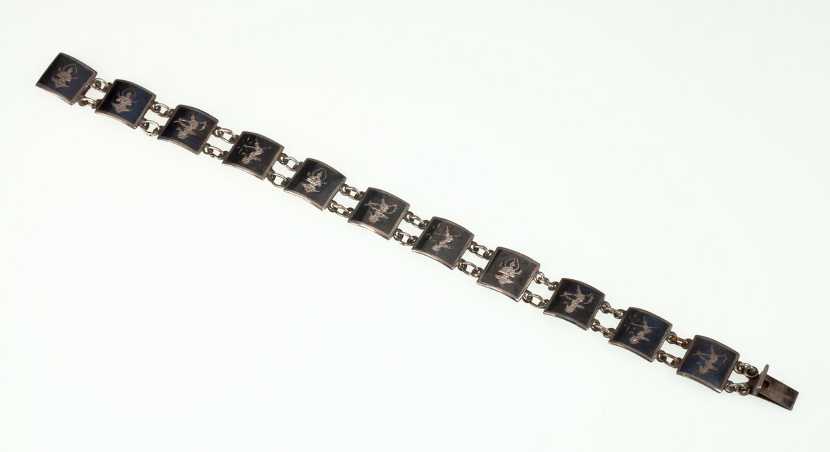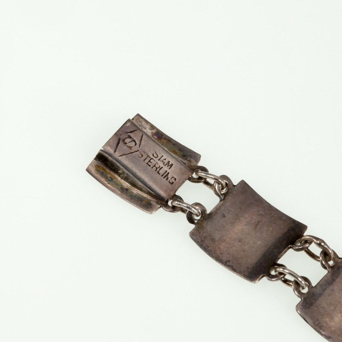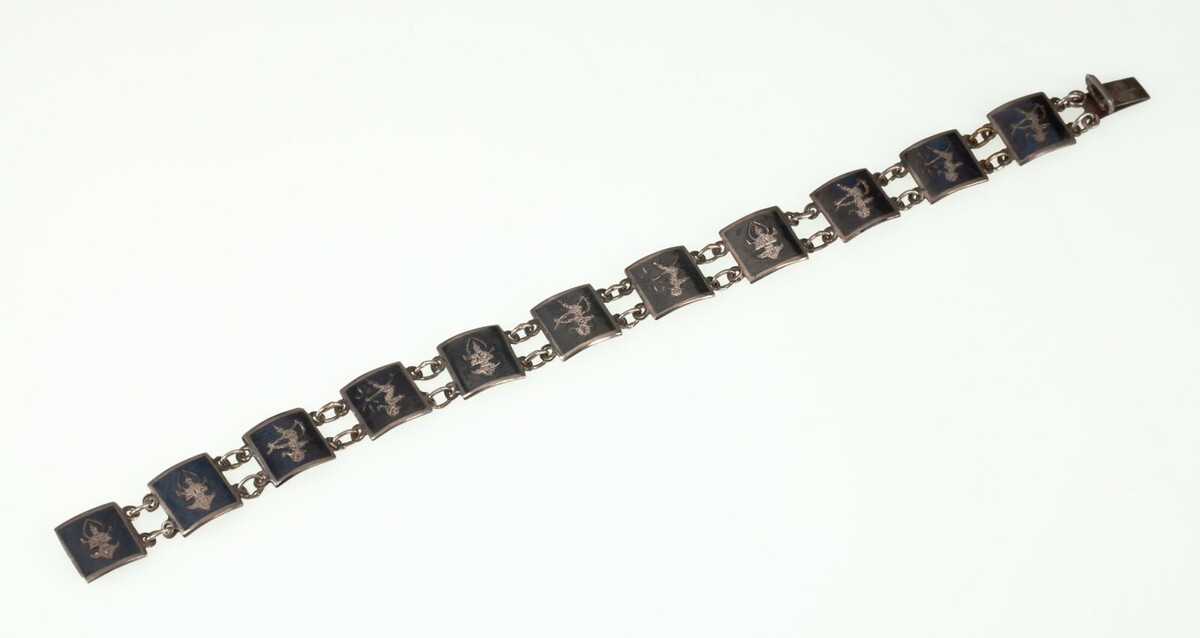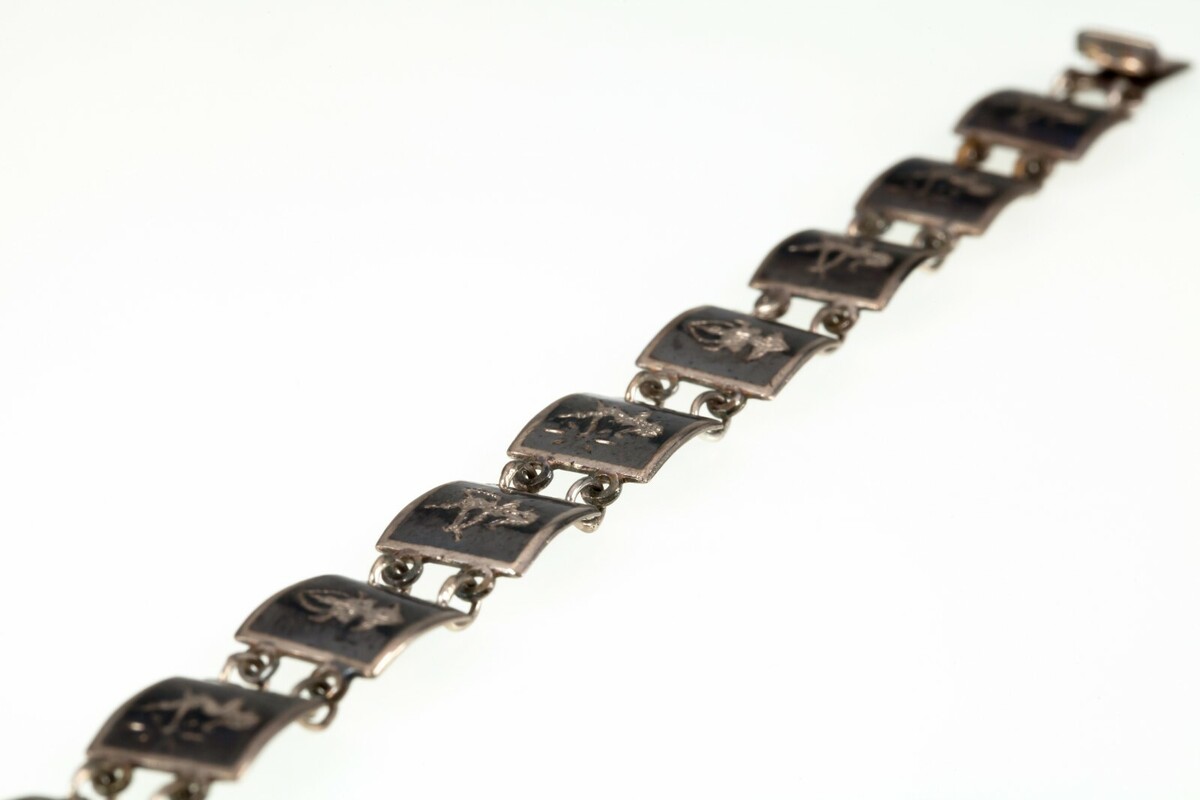 Vintage Thai Silver Siam Niello Enamel Panel Bracelet 7"