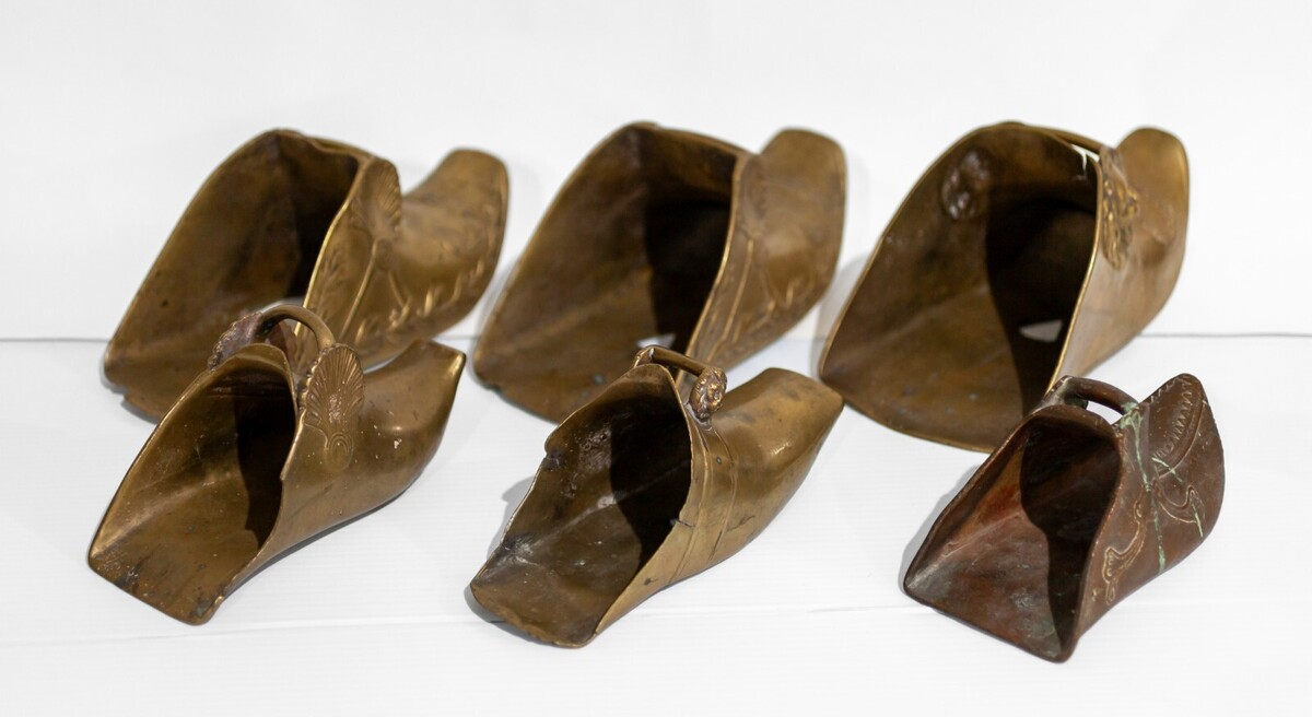Collezione Di Sei (6) Antico Spagnolo Coloniale Era Ottone Staffa Circa