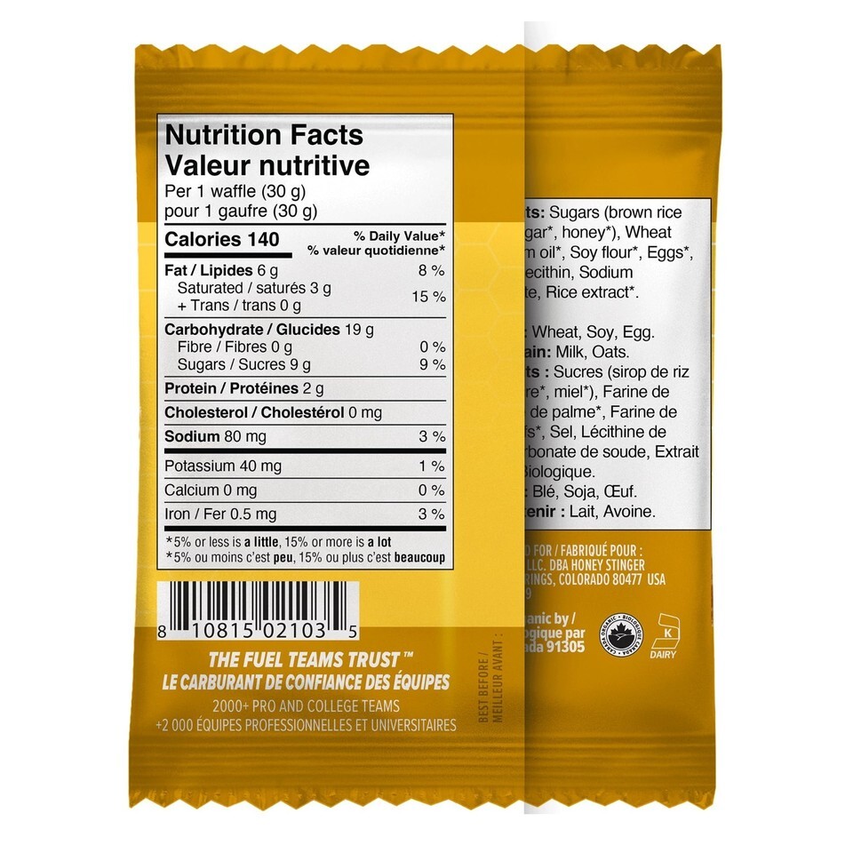 HONEY STINGER Organic Honey Waffles 12 Count, 1.06 OZ |