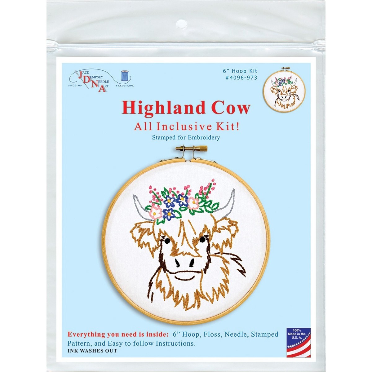 Jack Dempsey Needle Art Highland Cow 6 Inch Hoop Kit.