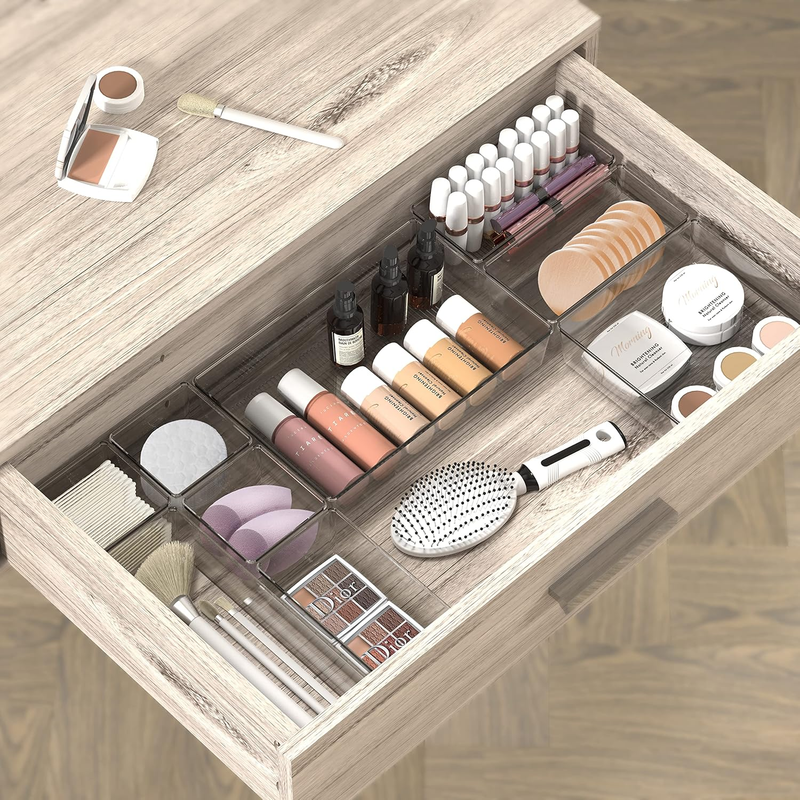 Clear design and different sizes easy to fit every kind of drawer for makeup vanity drawers, bathroom drawers, office and craft drawers