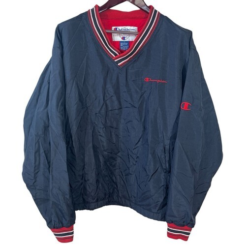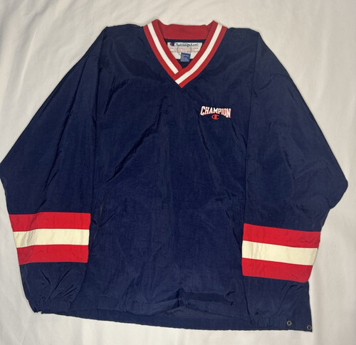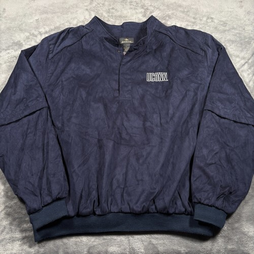 UConn Huskies Pullover Anorak Jacket Windbreaker Mens L Navy Vtg Champion
