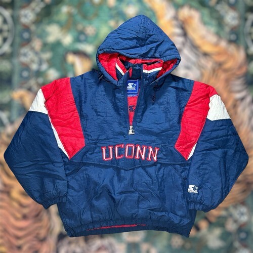 Keywords: UConn Huskies, College Apparel, Sports Jacket, Quarter Zip, Windbreaker, Athletic Wear, Team Gear, Pullover, Hooded Jacket, Outdoor Gear, Casual Wear, Activewear