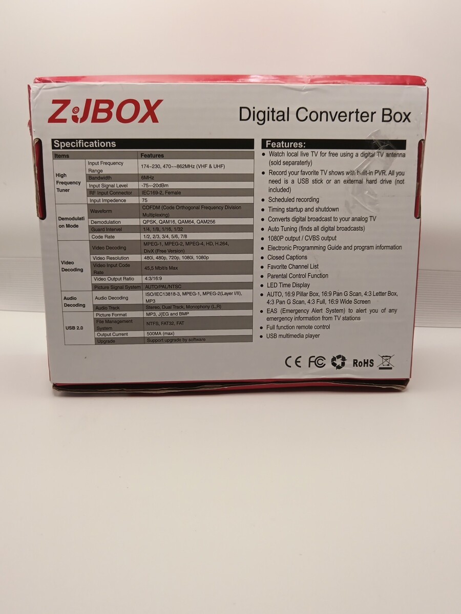 The ZJBOX Digital Converter Box is a versatile device designed to convert MPEG-4 media format for use with TV and video equipment. This converter box, part of the JBOX product line by ZJBOX, allows users to easily convert digital media for a seamless viewing experience on their television. With its compact design and user-friendly interface, this converter box is a convenient solution for those looking to enhance their TV viewing experience with digital media files.