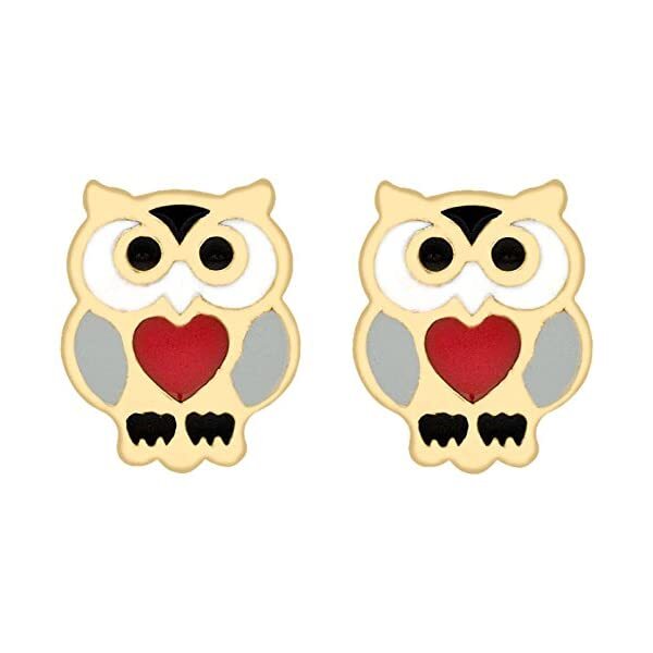 Product Name: Carissima Gold 9 ct Yellow Gold with Red Enamel Heart Owl Shape Stud Earrings