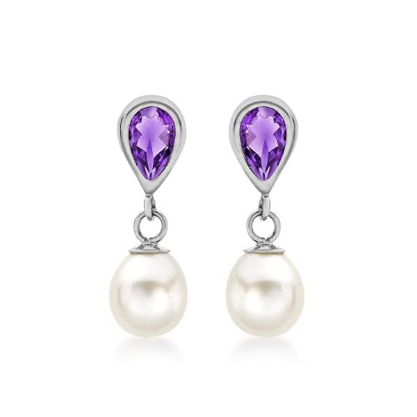 Product Name: Carissima Gold 9ct White Gold Amethyst and Fresh Water Pearl Drop Earrings
