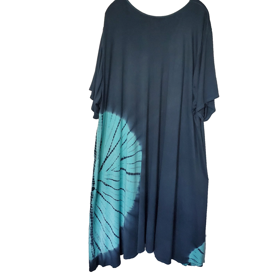 Plus Side 4X Maxi Dress Short Sleeves Jersey Dark Teal Aqua Swirl Pattern Soft