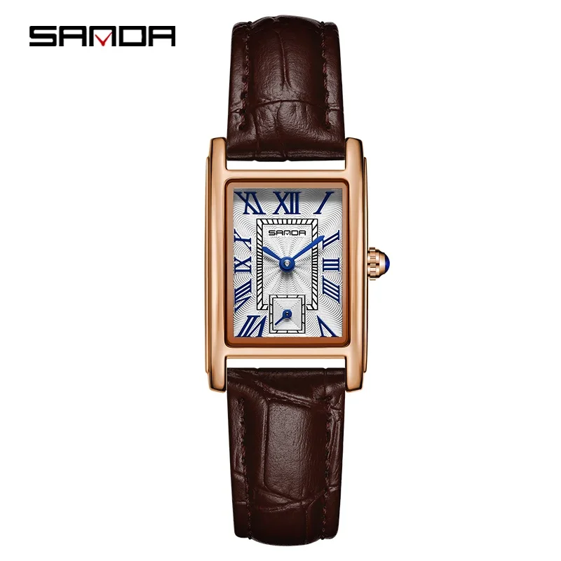 SANDA Fashion Elegant Design Rectangle Dial Water Resistant Leather Quartz Move
