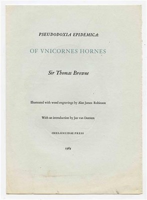 Book Announcement Pseudoxla Epidemica of Unicornes Hornes Sir Thomas Browne 1984