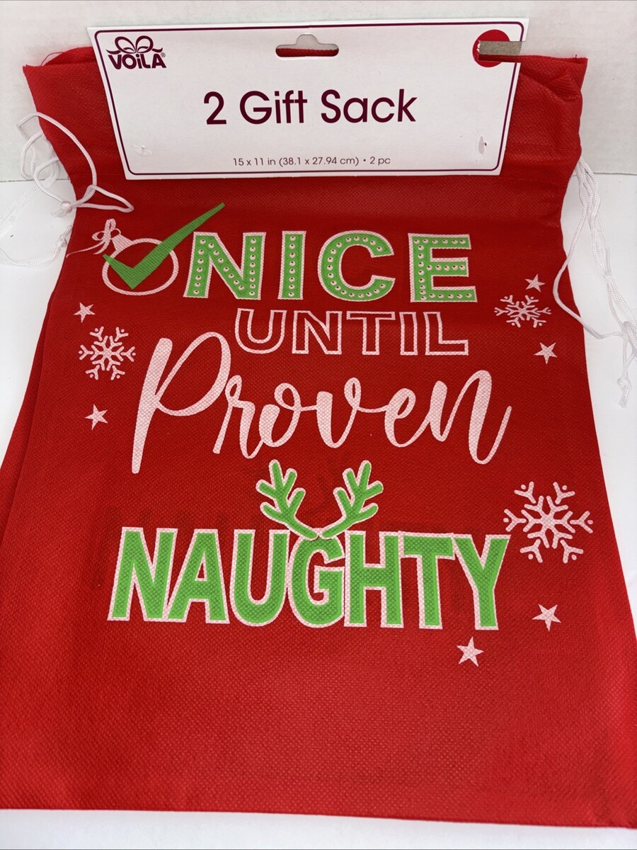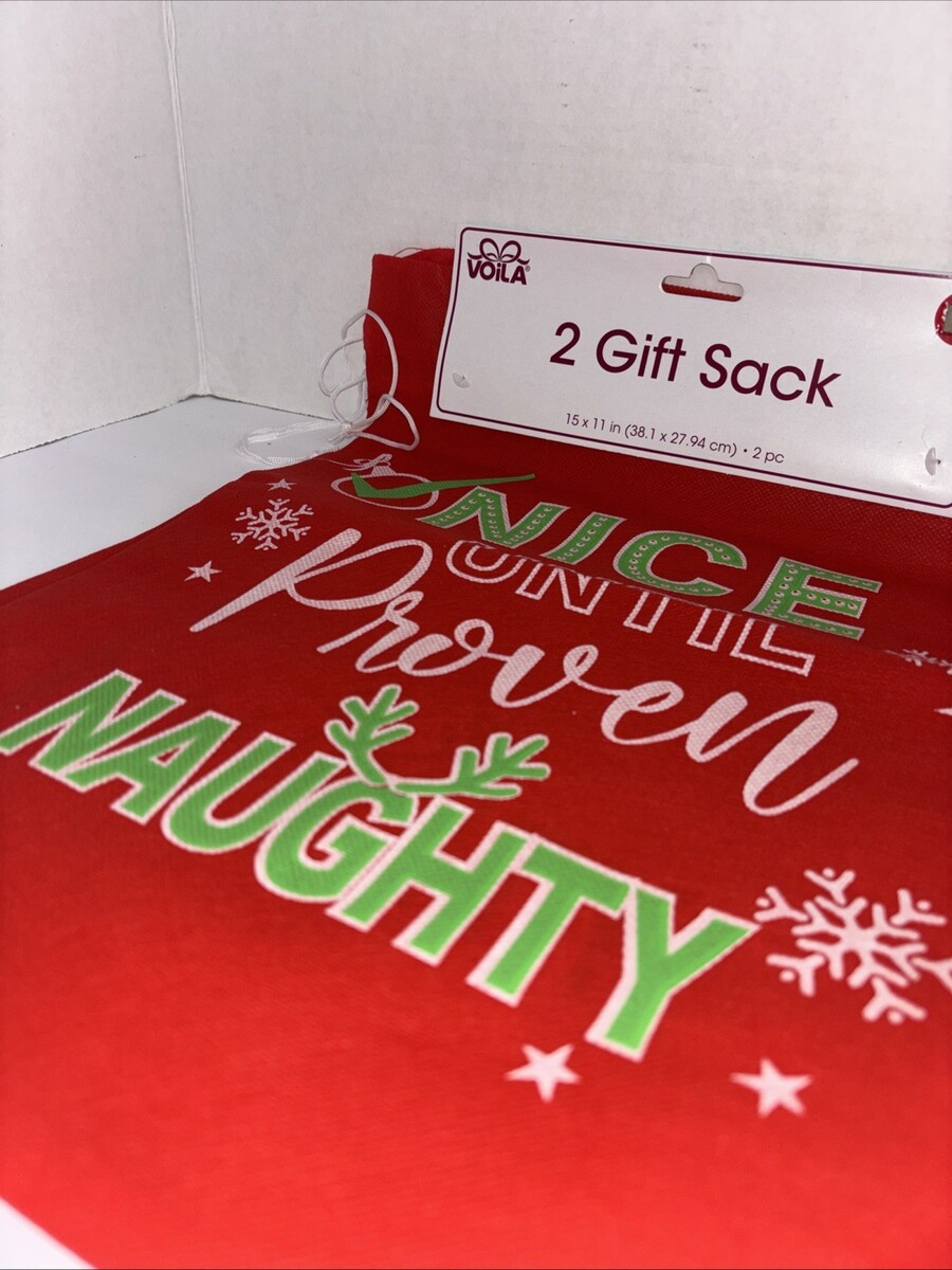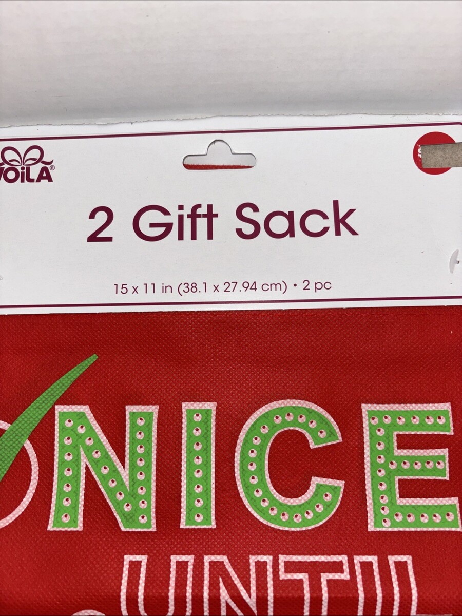 2pc Cute Funny Large Red Christmas Gift Sack, 15 x 11 in.—(NEW)—SHIPS IN 24 HRS