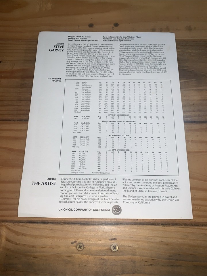 Dodgers Color Prints 1982 Steve Garvey Artist Volpe Union Oil 8 1/2"x11"