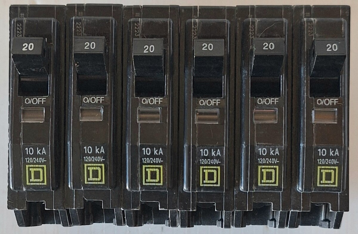 Lot Of 6 Square D QO120 20 Amp 1 Pole and similar items