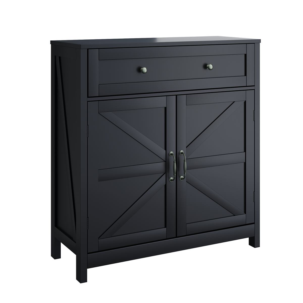 [Plenty of Storage] Farmhouse kitchen storage cabinet made of particle board and MDF, feature a large drawer, 2 barn doors cabinet with an adjustable shelf, meet your kitchen storage for coffee beans, glass food jars, plates, bowls and some sundries, and wide tabtop would a great way to place coffee maker, toaster and mugs