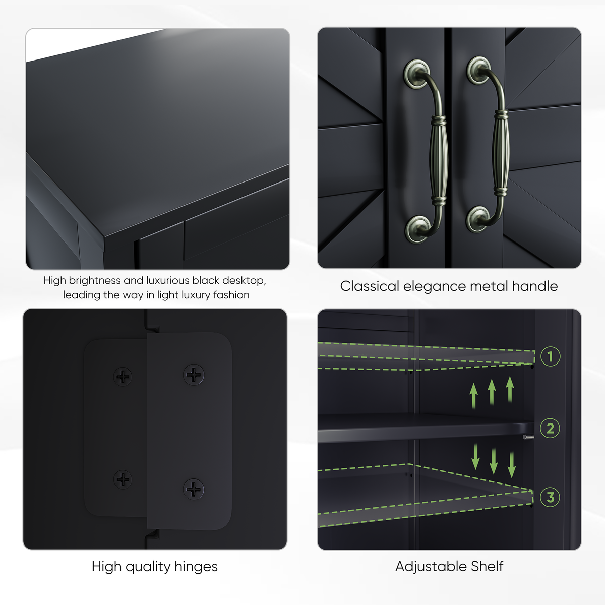 [Light Luxury blackTable top] The black table top of this coffee bar cabinets is made by painting process. The thickened tabletop and reinforced cabinet frame, enhances it thickness and stability. Its farmhouse yet stylish design complements modern, rustic, industrial, or vintage decor