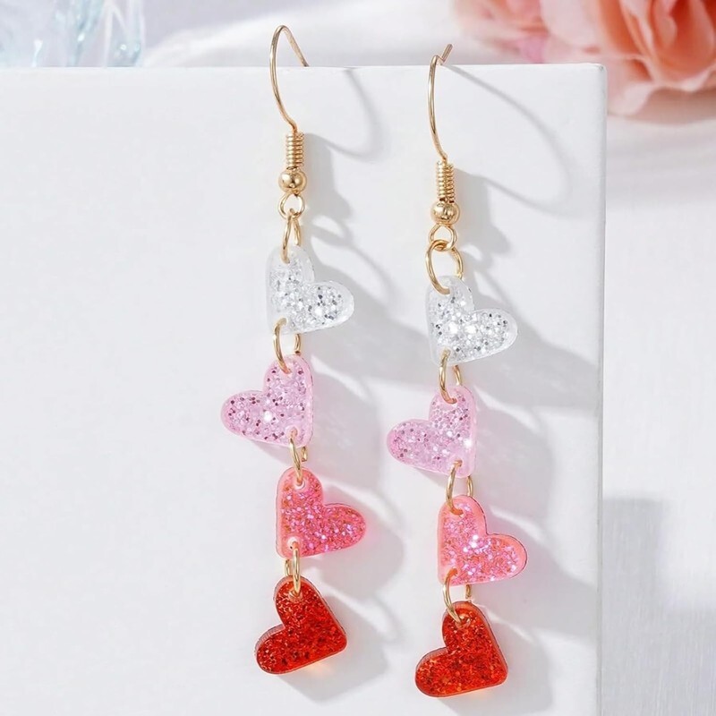 Valentine’S Day Heart Dangle Earrings – Red Pink LOVE Acrylic Drop Holiday Jewel