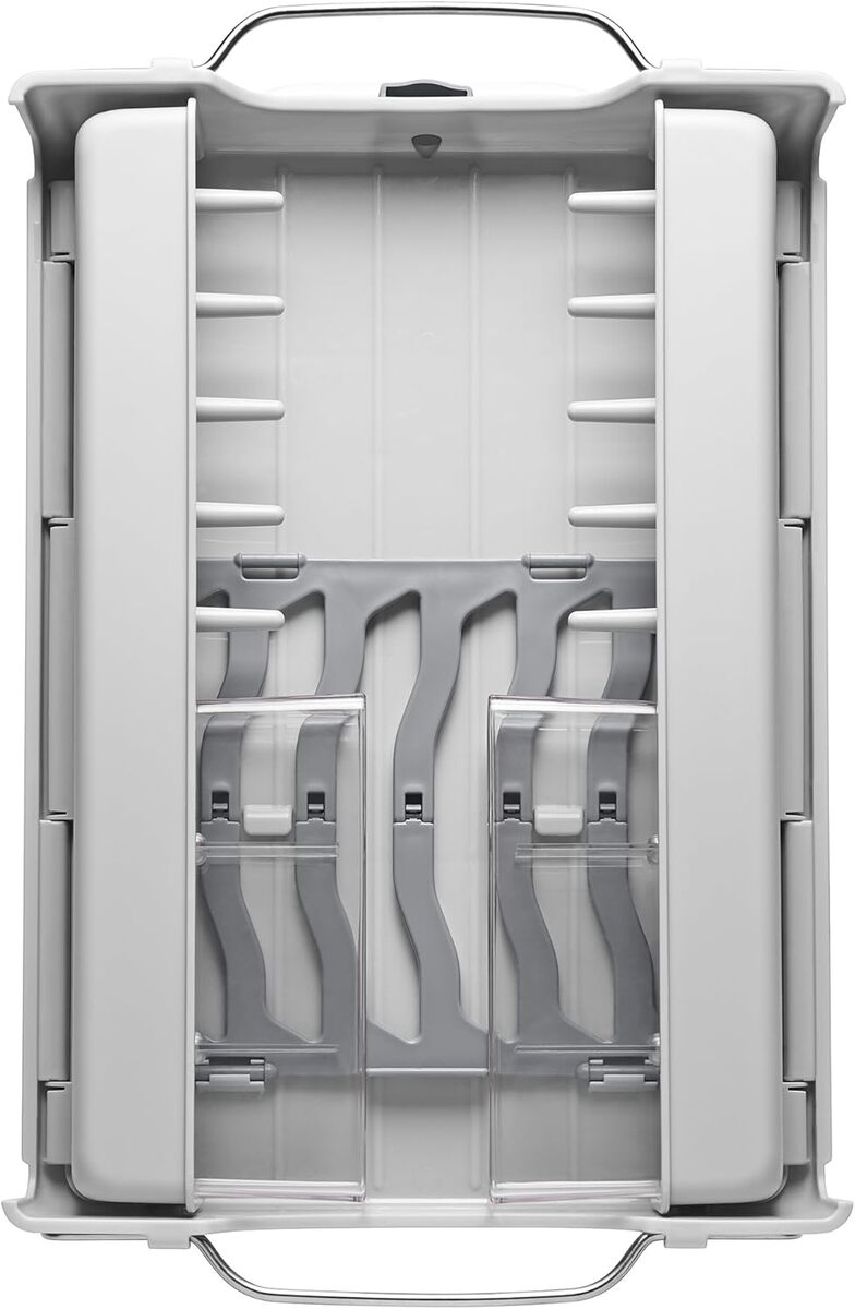 Plate rack folds down to make room for large bowls, cookware and more
