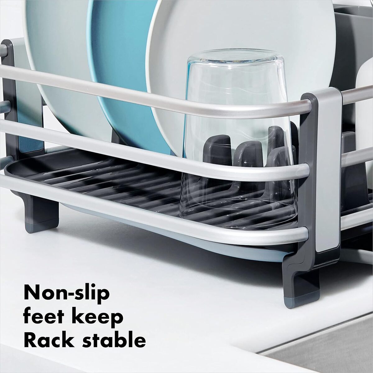 Non-slip feet keep rack stable on countertops