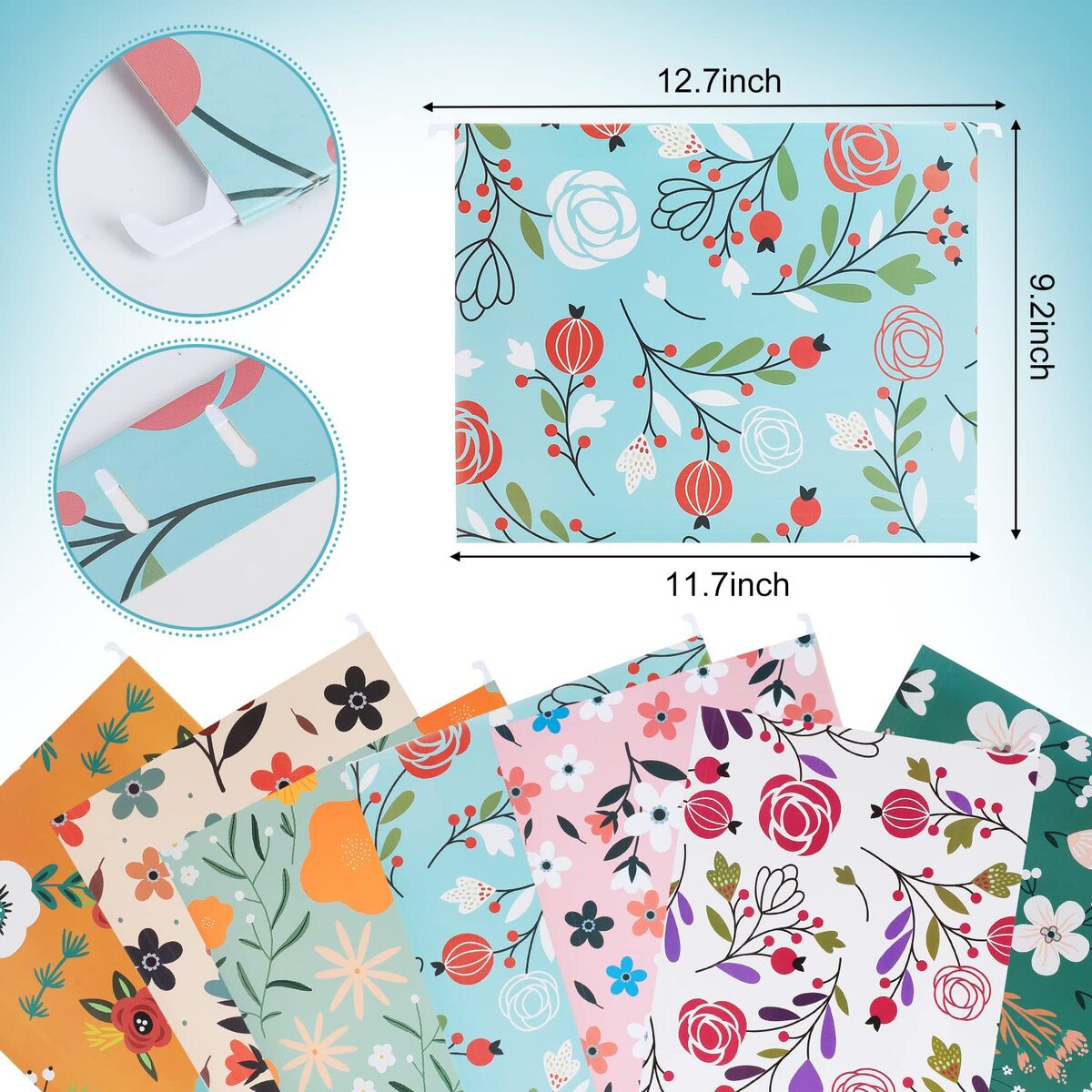 30 Pcs Decorative Floral Hanging File Folders, 10 Colored Designs, Office Home