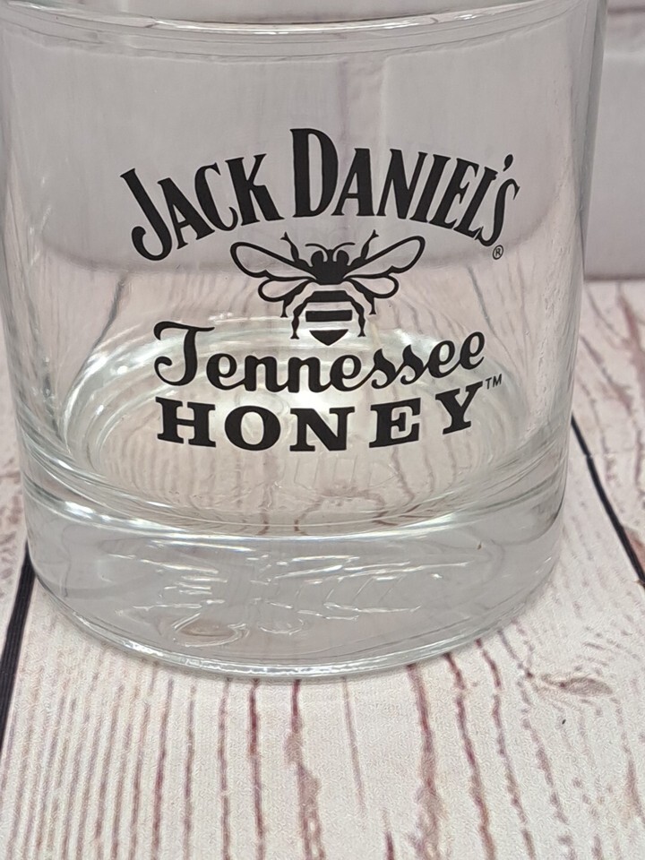 2 Jack Daniels Tennessee Honey Whiskey Rocks Glass Bumblebee Logo Embossed 8 oz.