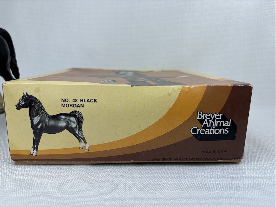 Breyer 1970's CHALKY Black Morgan #48. Matte, Star Grey Hooves With Original Box