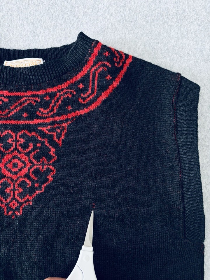 Vintage Pendleton Womens Red Black Nordic Sweater Vest 100% Virgin Wool Read