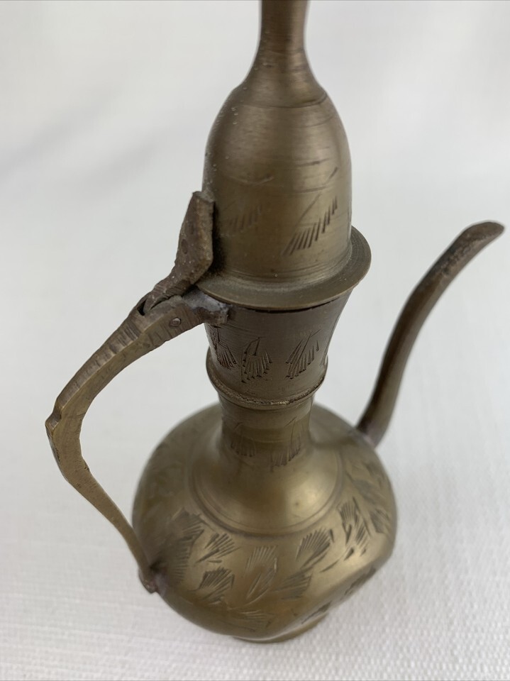 Vintage Indian Brass Hand Carved Tea Pot and similar items