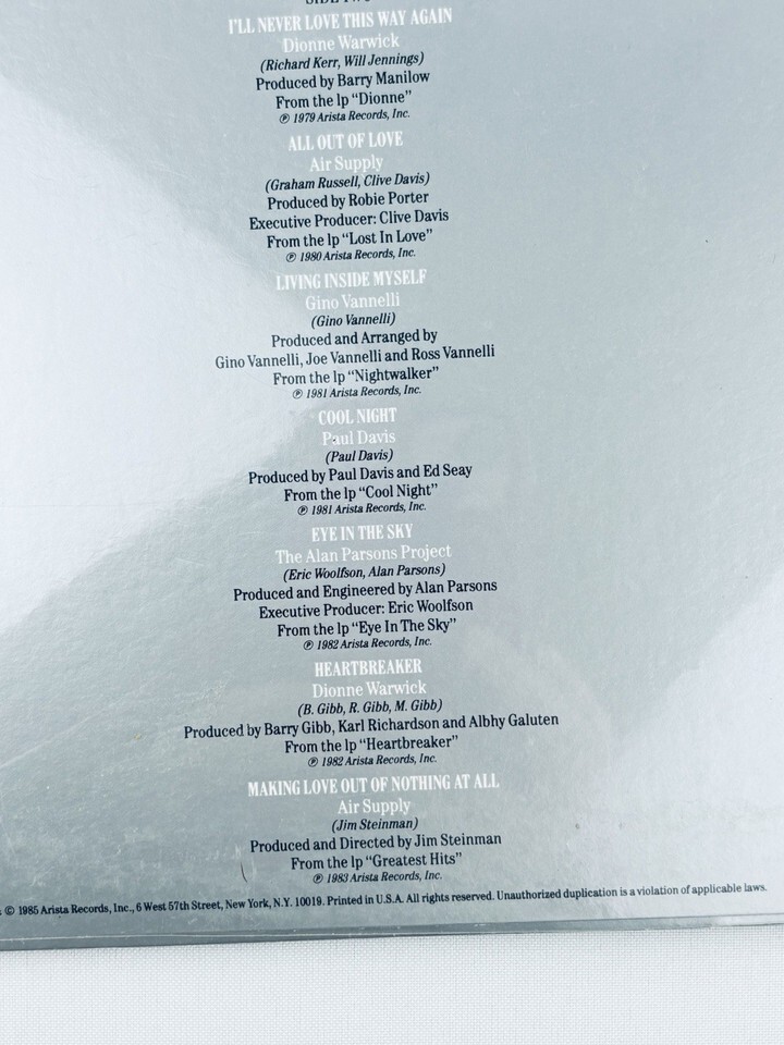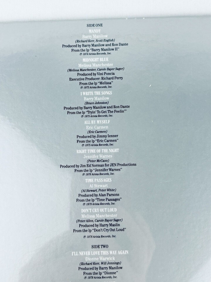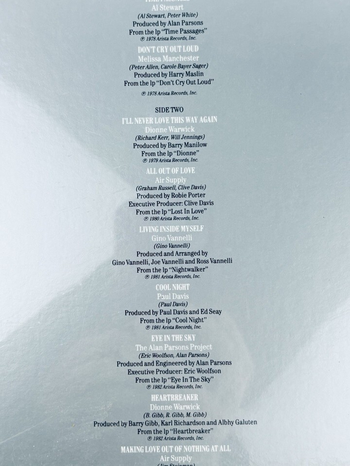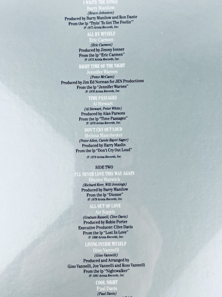 Barry Manilow - Melissa Manchester - Eric Carmen - Jennifer Warnes - Al Stewart - Dionne Warwick - Air Supply - Gino Vannelli - Paul Davis - The Alan Parsons Project -