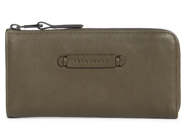 Longchamp 3D Quarter Zip Around Leather Wallet ~NIB~ Gift BOX Khaki