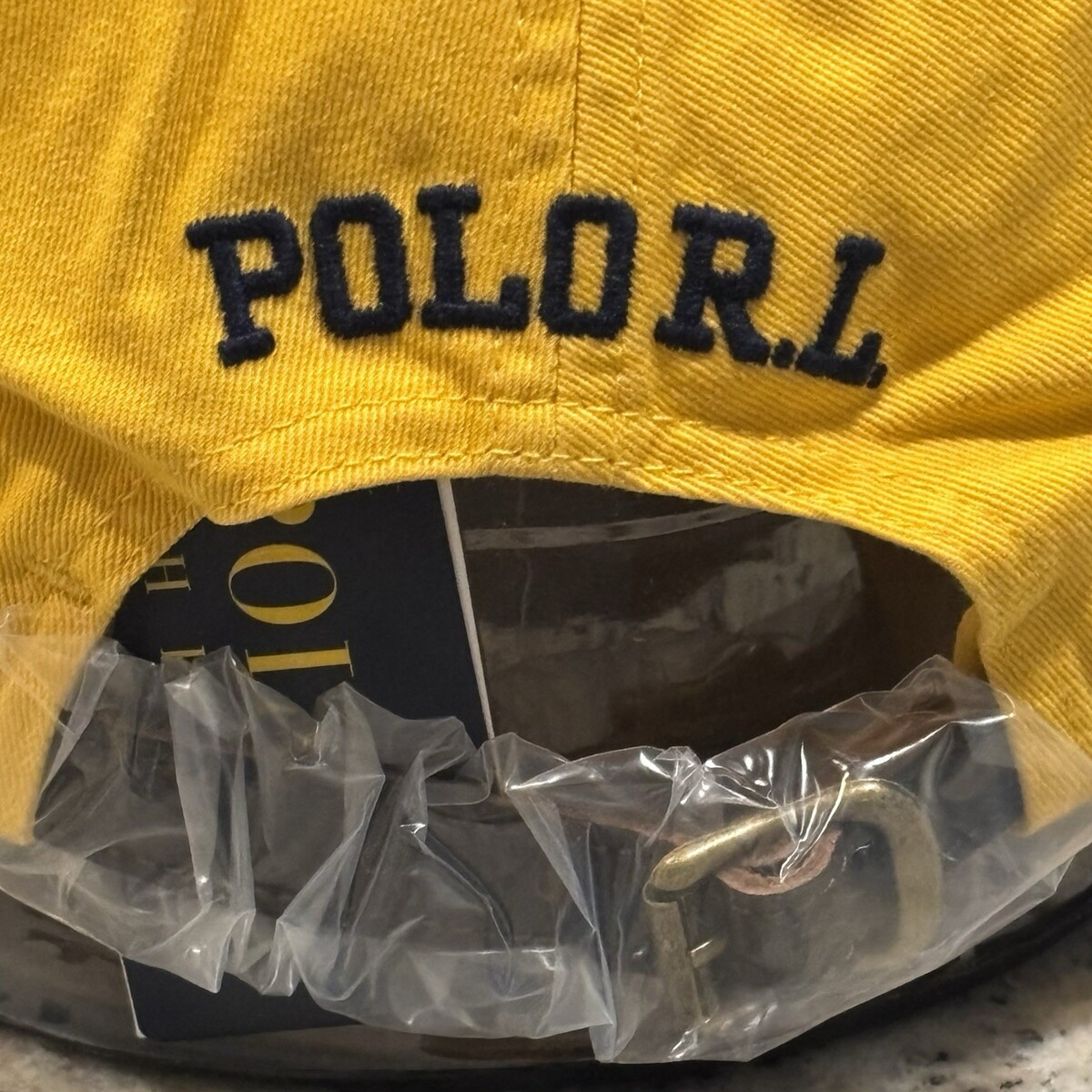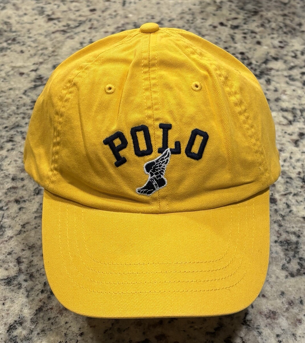 Polo Ralph Lauren Yellow Winged Foot Dad Hat Adjustable Cap Leather Strapback