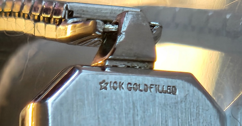 The watch features a 10K /10ct gold-filled case, with a polished finish and a fixed gold bezel. With a mechanical manual movement and 17 jewels, this analogue wristwatch exudes timeless elegance.