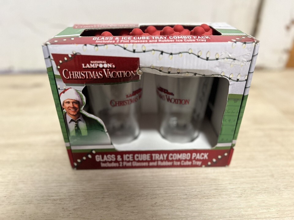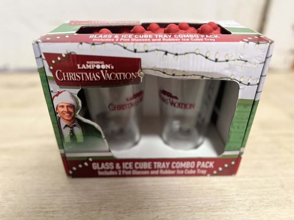 National Lampoon's Christmas Vacation 2 Pint Glasses & Ice Cube Tray Chevy Chase