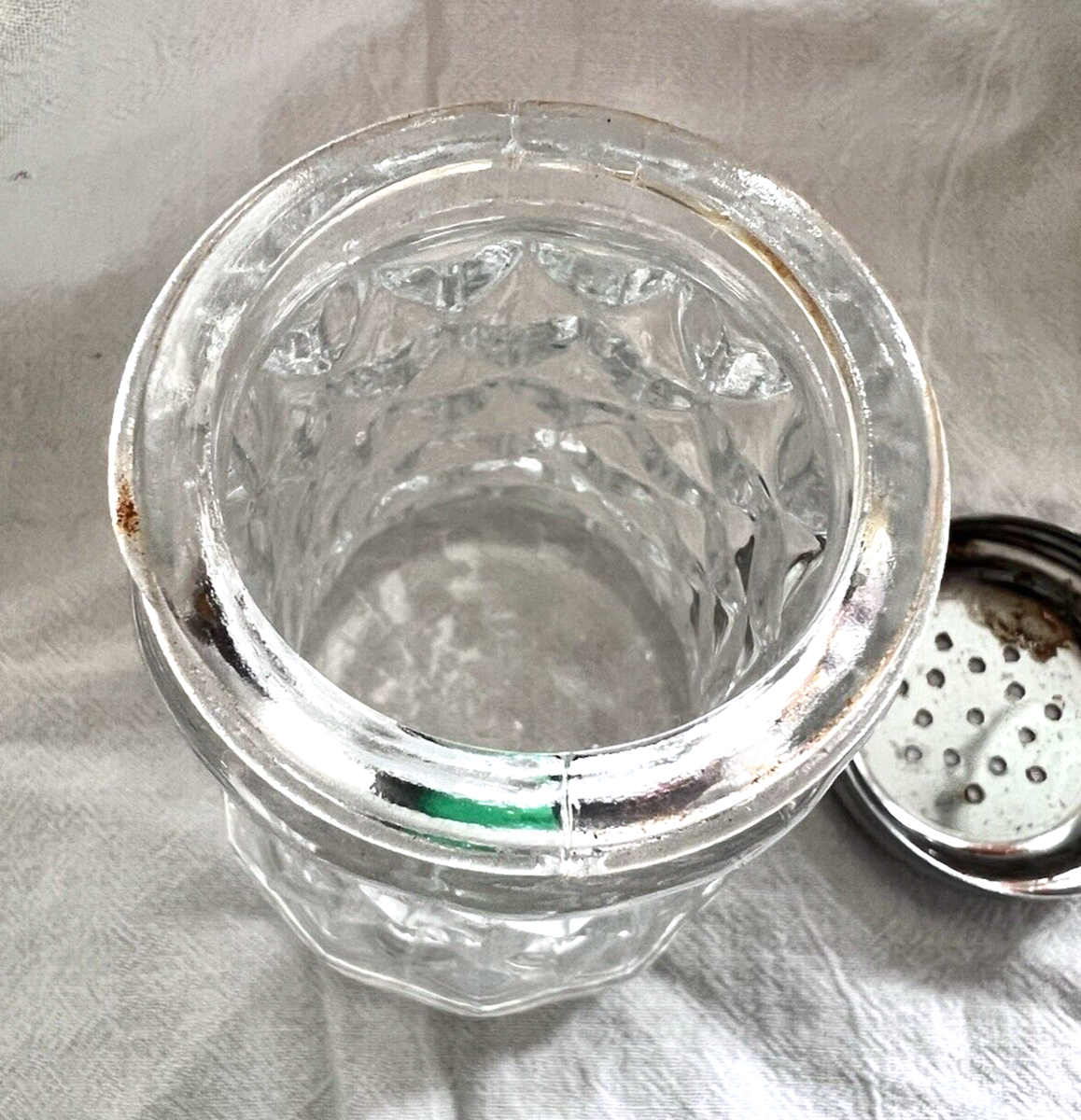 Fostoria American Sugar Shaker with Stamped Metal Top Great Shape