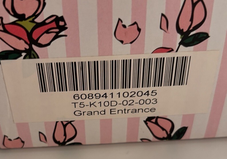 Robert Tonner 2005 T5-K10D-02-003 10 inch Grand Entrance Tiny Kitty Collier Doll has curly rust auburn hair, and painted forward-glancing blue eyes. Her ball costume consists of a gorgeous formal gown with a silver brocade bodice, full peach taffeta under lace skirt with peach flowers at waist, and a long opera coat that is shiny silver brocade on the outside and pink taffeta inside with a matching hood, silver high heels, rhinestones necklace, and earrings. The catalog showed a pink outfit, but the dolls that I received wore a peach or pinkish orange costume. Discontinued limited edition doll is new and mint-in-the-box.