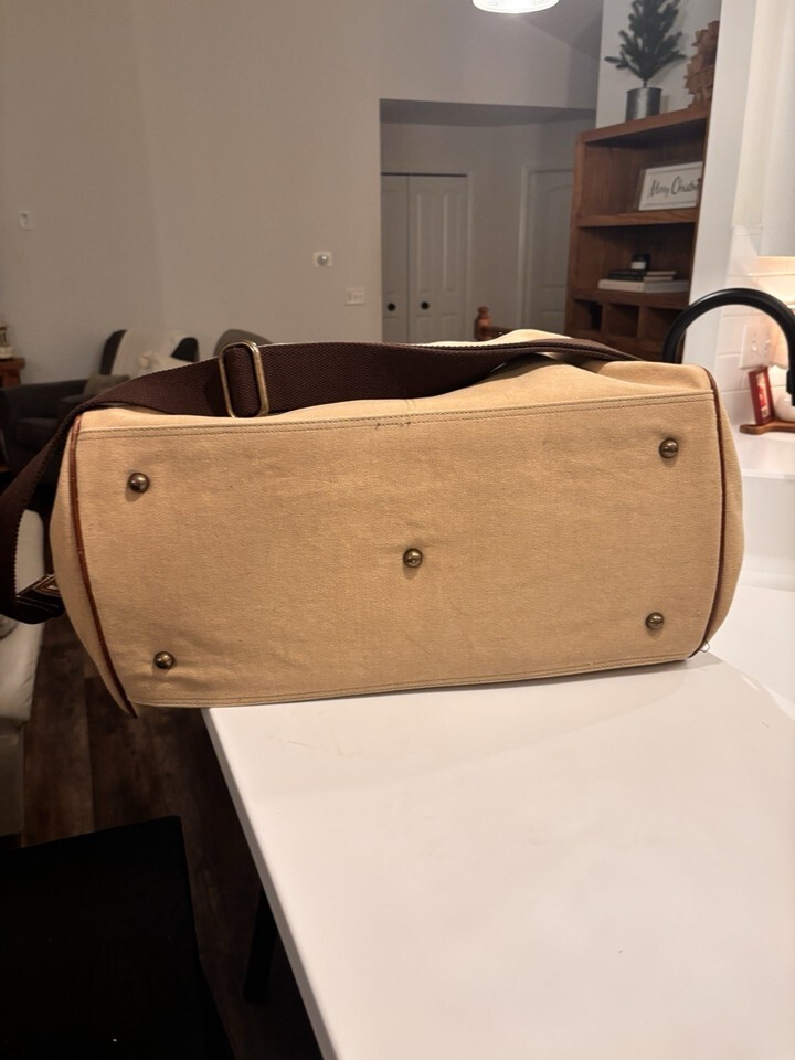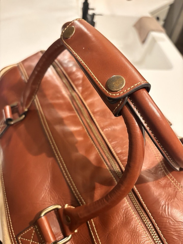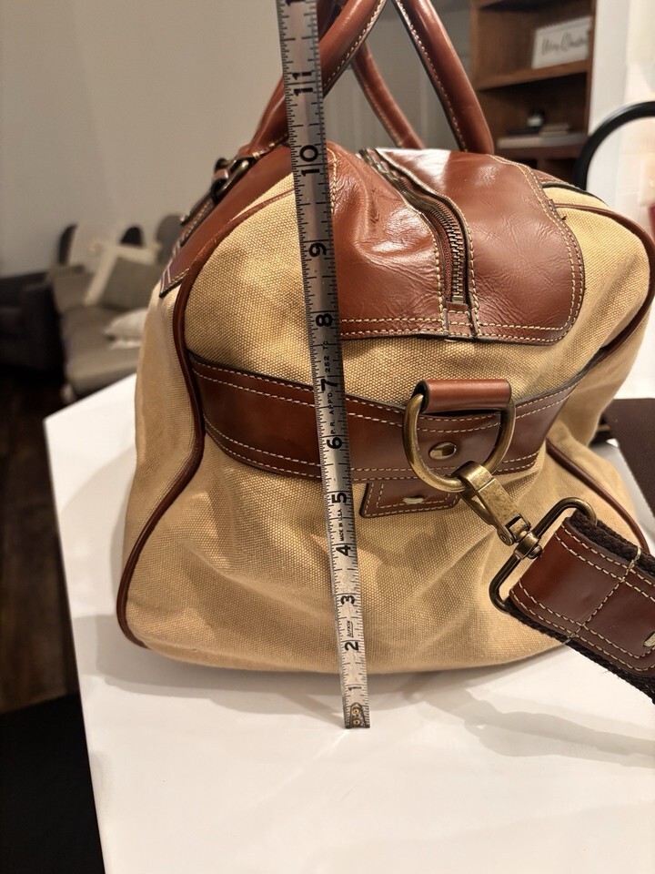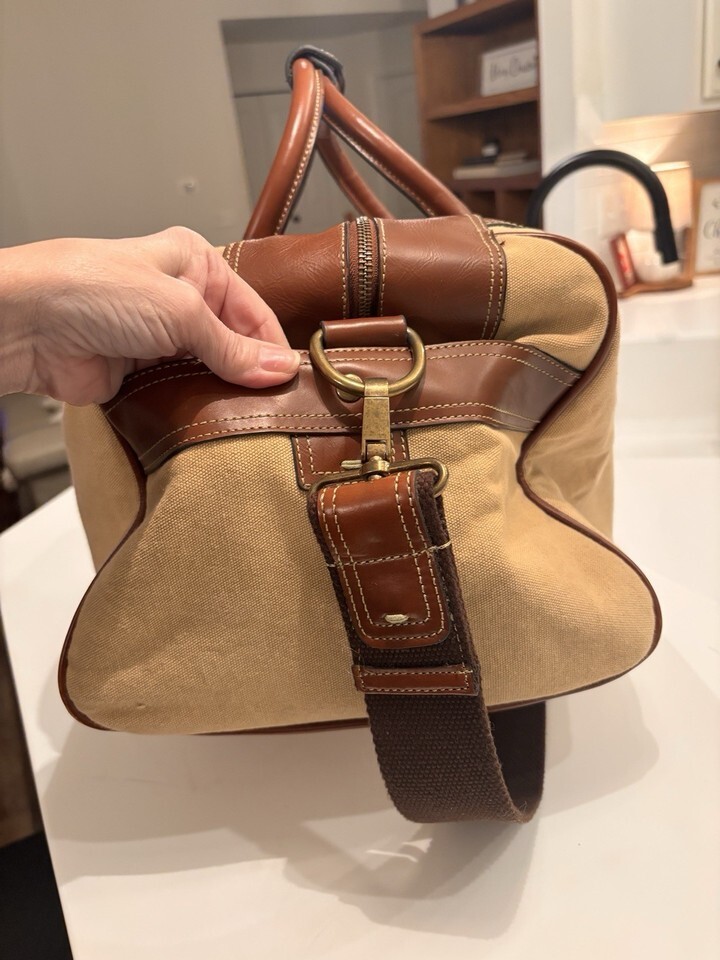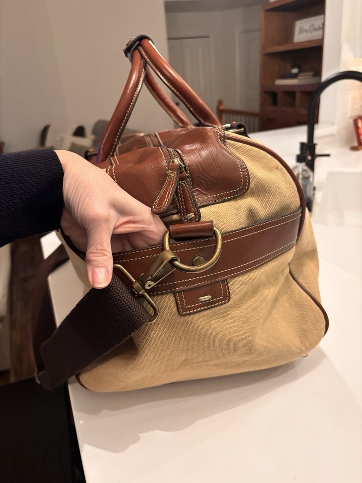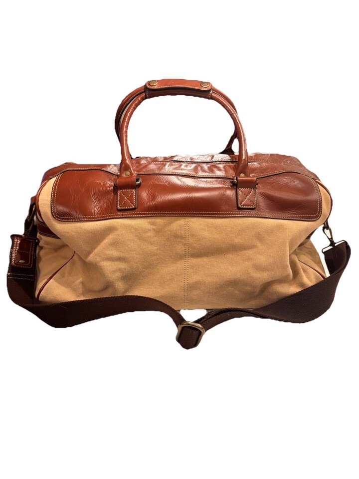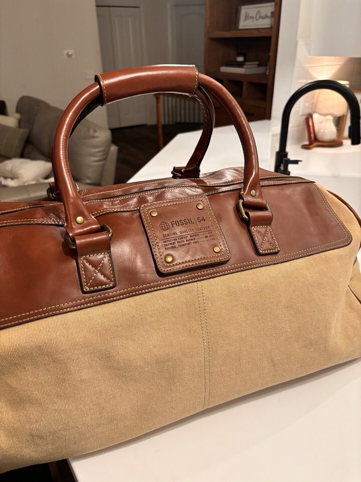 Vintage Fossil Large Leather And Canvas Duffle Travel Bag