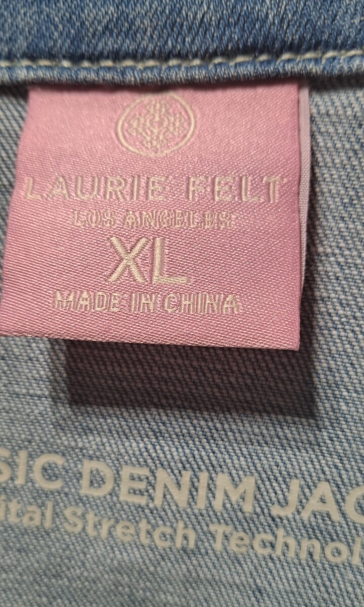 Laurie Felt Daisy Denim Jean Jacket Light Blue Button Front Semi-Fitted XL NWT
