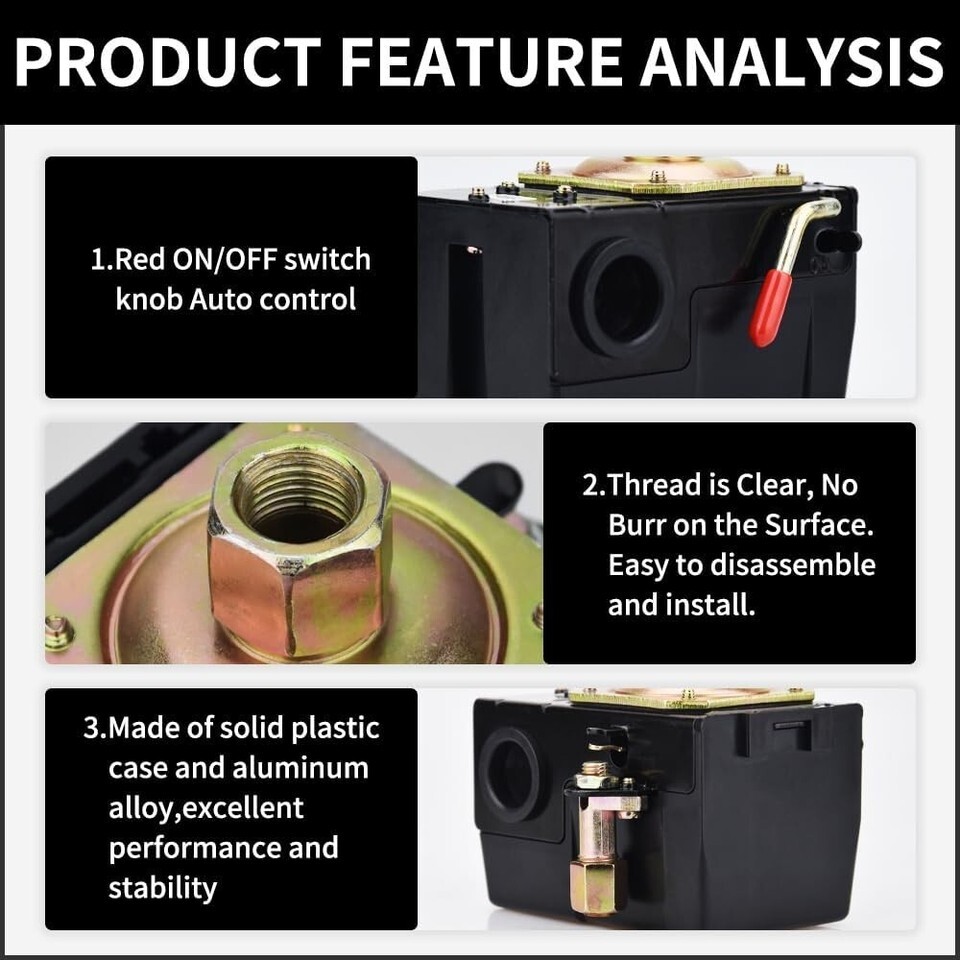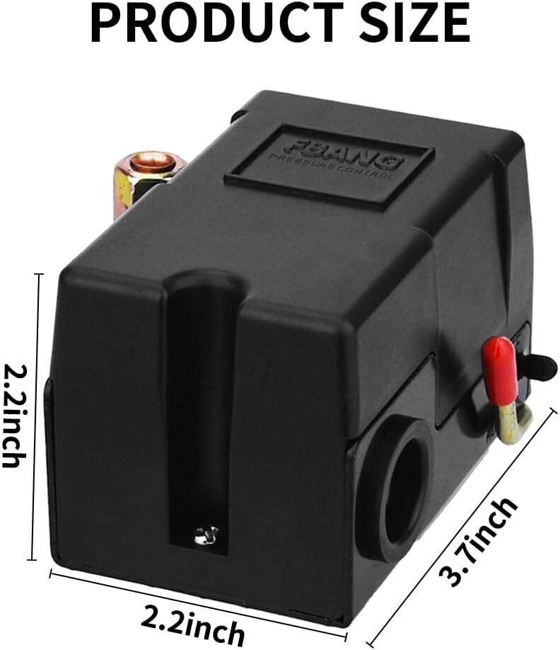 Product specifications: Heavy duty air compressor pressure switch is 1/4 interface, max voltage: 240 V, Current: 16-20A, suitable for 90-120psi