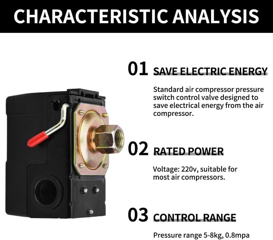 This pressure switch for air compressor is made of plastic and alloy, with sturdy and durable materials, and a long service life