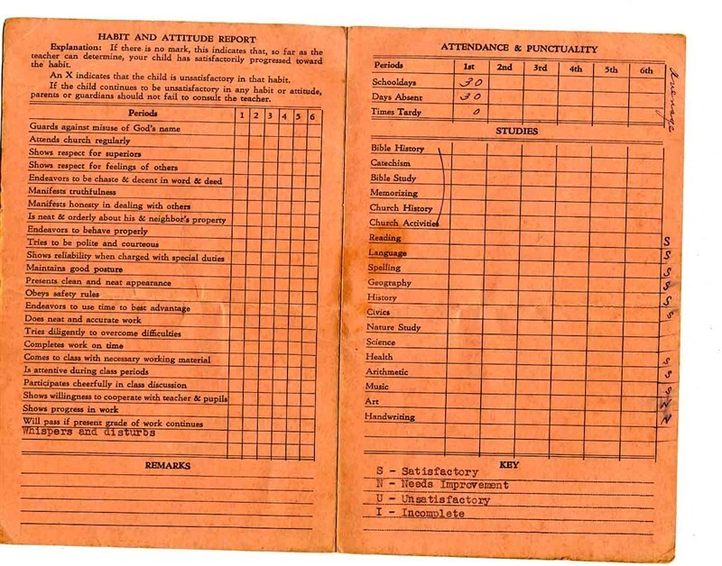 Trinity Evangelical Lutheran School 1937 Report Card Mobile Alabama