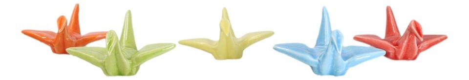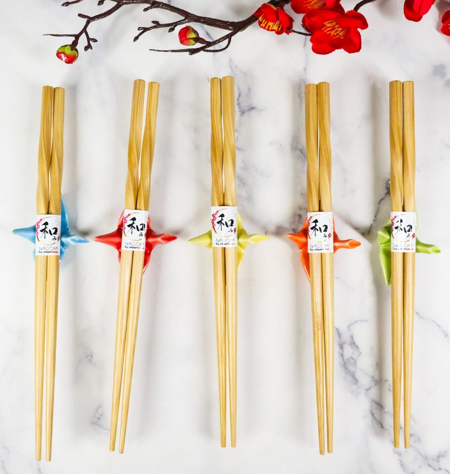 5 Pairs Of Colorful Origami Crane Birds Ceramic Rests With Wooden Chopsticks Set