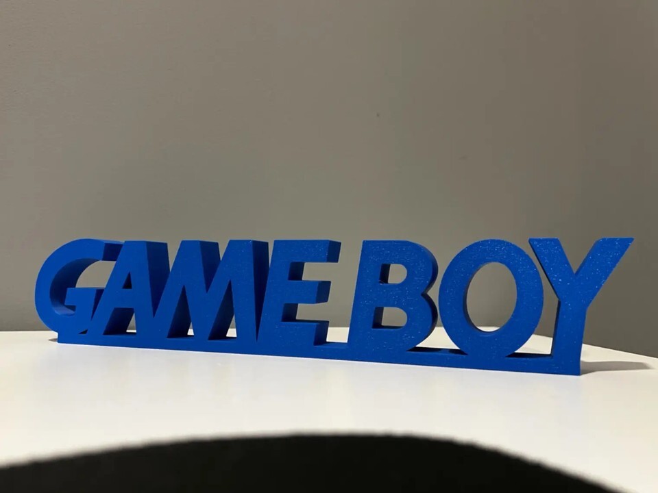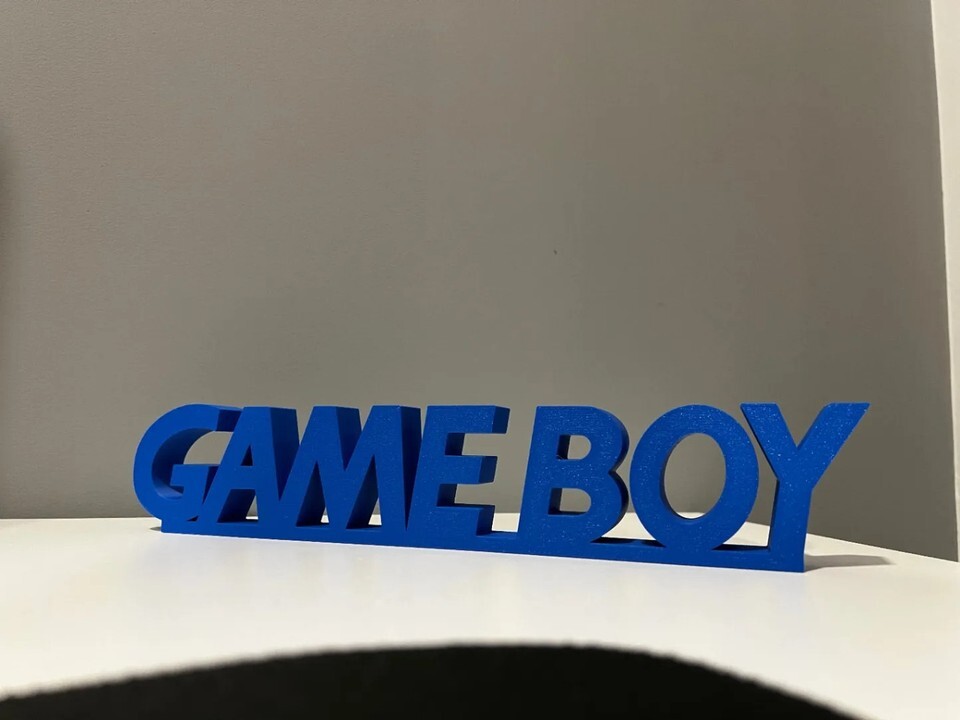 Showcase your love for classic gaming with this striking blue Game Boy logo sign. This freestanding display piece is 3D printed, featuring the iconic font from the original handheld console. It's the perfect addition to any game room, man cave, shelf, or desk for a touch of retro Nintendo nostalgia. A must-have collectible for any retro gamer or Nintendo fan, this sign adds a unique and stylish tribute to a legendary system.