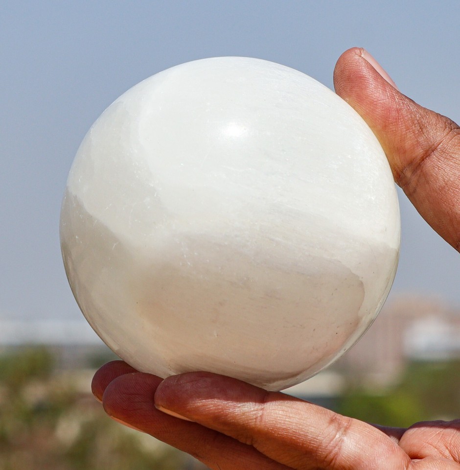 85mm White Selenite Ball Crystal Quartz Healing Reiki Decor Stone Sphere Globe