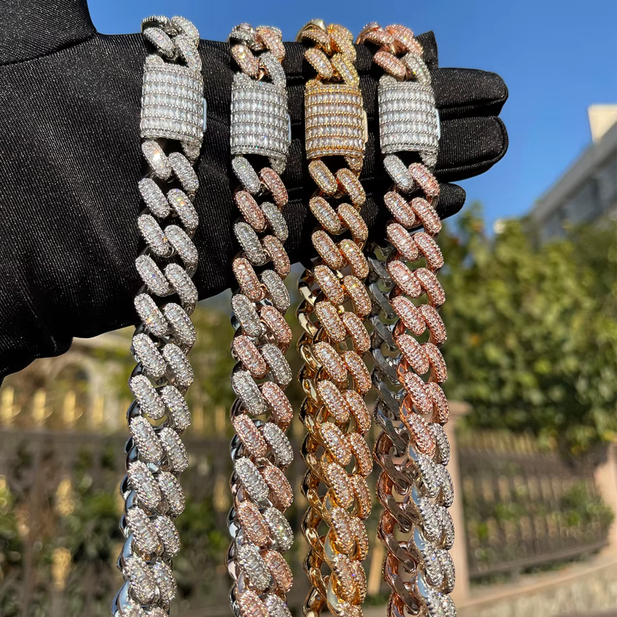 15MM 5AAA+ CZ Baguette Hop Hip Ice Out Miami Cuban Chain Necklace for Men