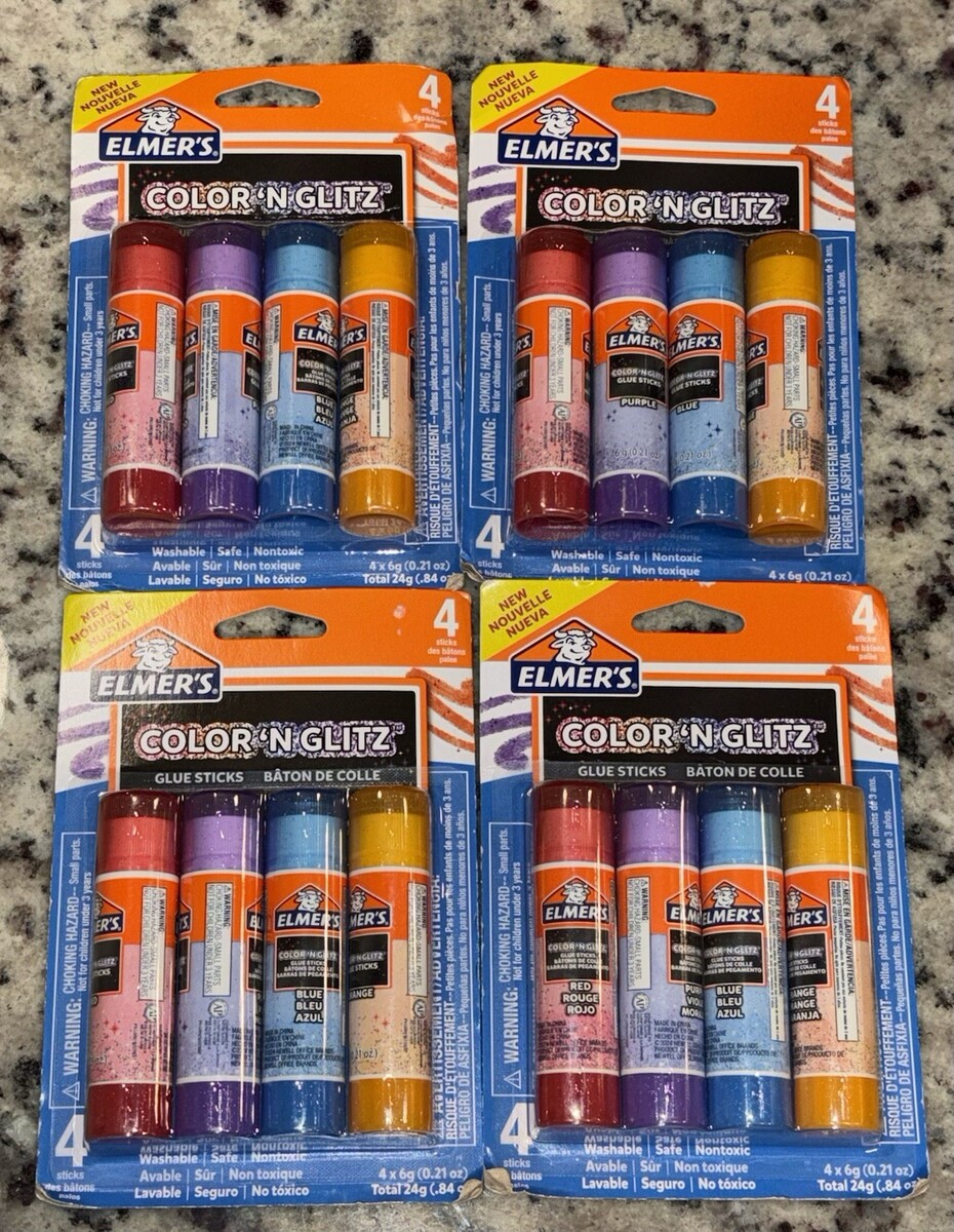 4x Elmer’s Color 'N Glitz Glue Sticks 4 ct Assorted Colors New Sealed