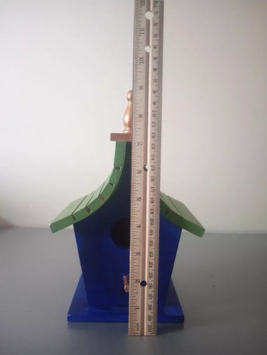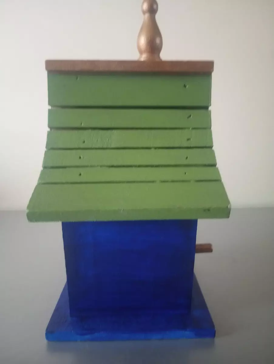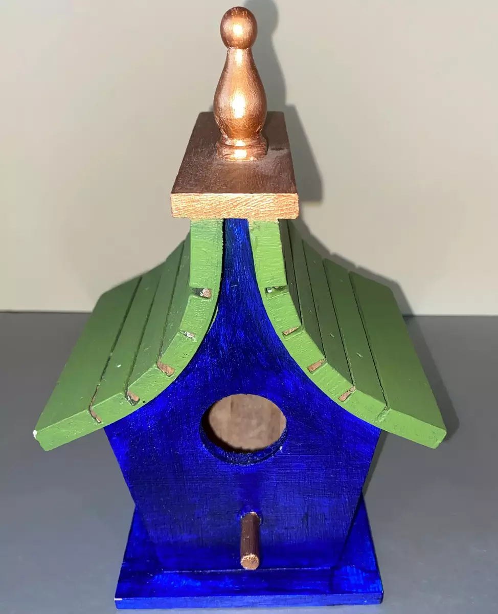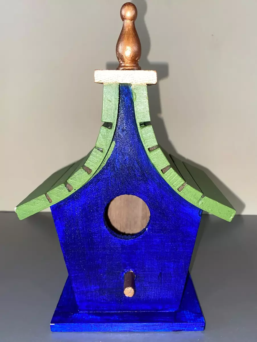 We fell in love with the character of this unique, handmade birdhouse. Its beautifully distressed colors give it an authentic, time-worn appeal that would look perfect hanging from an oak tree or nestled in a cottage garden. It's surprisingly sturdy and well-built—a true testament to the artisan's skill—ready to bring life and vintage charm to any outdoor space.