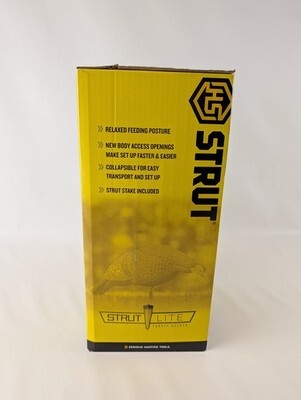 Strut-Lite Feeding Hen offers a lightweight, foldable hollow body construction for easy transportation and storage. Flake resistant paint jobs make for extremely realistic decoys that fool even the wisest toms. Relaxed feeding position portrays low level of danger to nearby turkeys. 2 piece ground stakes allow for quick setup and removal.
